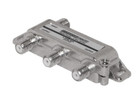 This digital splitter has a F-Type female input on one side and three F-Type female outputs on the other side. It is typically used to split broadband or CATV 5-3000MHz 75Ω sources such as hybrid distribution networks, HDTV, voice, data, modem and digital converter applications to dual outputs.